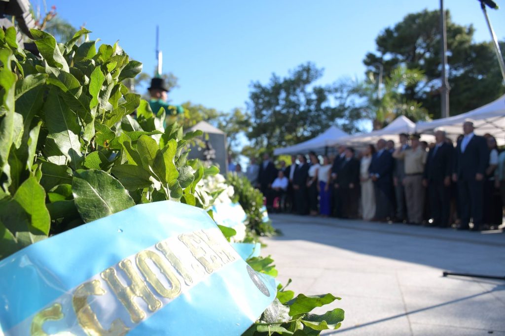 La ceremonia reunió a funcionarios municipales y provinciales, legisladores y representantes de distintas instituciones de la comunidad, en un marco institucional orientado a la evocación histórica y a la reflexión sobre la vigencia del legado sanmartiniano.