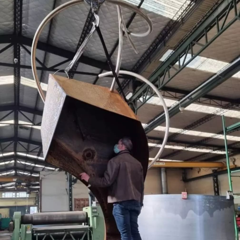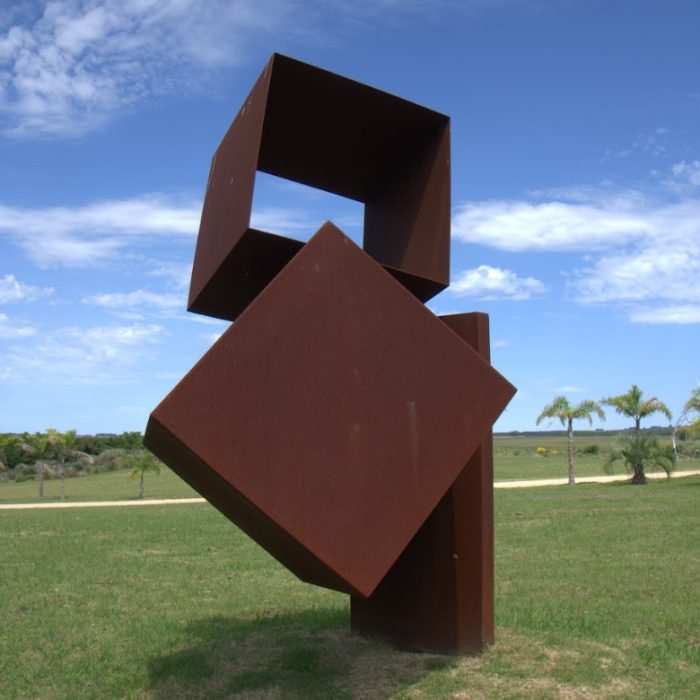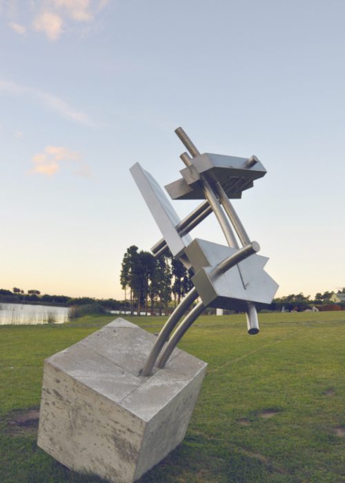 – Bueno, Gondwana surge también desde un sentimiento muy profundo que me acompaña desde muy pequeño, diría… de ver un mundo, de sorprenderse como sorprenden los niños habitualmente cuando pueden llegar a ver un pequeño animalito o un reflejo de luz, de sol en un lago, y quedan sorprendidos con esa mirada fresca de niño que no tiene tanto prejuicio. Y por momentos me agarraba así como un shock, podría decir, de conciencia, de decir: “Bueno, esto está como todo interconectado. Si muevo algo, estoy afectando el todo… como que a la vez no lo afecto”. Imaginemos esto en la mente de un niño. Así que creo que ese germen, ese ADN de ese proyecto estaba ahí latente, y se hace presente porque quería vincular las esculturas como transformadoras —las esculturas de la serie de Sonitus— como transformadoras, inicialmente con África, ahí por el año, más o menos, 2018. Y sé que, poniendo una fecha, a veces uno es un poco reduccionista, porque yo empecé con esto en el 2003, originalmente haciendo relevamiento de la pampa peruana, de los dibujos de la línea de Nazca, sacándolos de esa planitud que se encuentra en esas líneas de Nazca y colocándolas en una tridimensionalidad. Pero bueno, concretamente con el proyecto Gondwana, y por el 2018, a través de un gestor cultural uruguayo-argentino, empezamos a relacionarnos con un parque de escultura de Sudáfrica. Y bueno, después no prosperó esa gestión cultural, y por estas cuestiones de la comunicación de hoy en día, me contacta gente de Kenia, de una ciudad del interior del país que se llama Kizumu. Ellos son unos hoteleros, y ahí dije: “Bueno, esto es para reflotar el proyecto”. Ellos querían comprar una obra para el hotel, y les dije que realmente… les conté del proyecto en que estaba, y me parecía que era oportuno que ellos puedan ser parte de ese proyecto para Kenia. Y bueno, ahí empezamos a trabajar con ellos. Enviamos dos esculturas a Kenia: una en Nairobi, en la capital del país, y otra en Kizumu. Y ahí fue todo un gran comienzo, digamos, de este proyecto que no para y crece cada día más. La verdad que estoy muy contento con ello. Y gente que se va sumando al proyecto, como el historiador Nelson Durante, que también fue un gran aporte. Desde hace un año, año y pico, estamos trabajando con Nelson, generando puntos de encuentro entre la aplicación del proyecto, las esculturas en cada una de las localizaciones, y no que esas esculturas queden instaladas únicamente ahí o estén instaladas por capricho, sino generar un vínculo con lo territorial, con lo cultural, respetando la presencia, inclusive hasta de los vientos que circulan por cada uno de los lugares, como es la del Paso Garibaldi que estamos gestionando. Ya está hecha la gestión, pero bueno, tenemos que instalar la pieza ahí en el Paso Garibaldi, en Tierra del Fuego. Así que sí, la verdad que con el proyecto, muy muy contento. Ese proyecto habla de un único territorio, como el nombre ya un poco nos condiciona, nos aproxima a sentir Gondwana como un nombre de referencia a la idea de un todo junto, de un único territorio. Esto es lo que pienso para la humanidad: que podemos reconocernos como un territorio humano, una expresión del espacio. Ahí podría parafrasearlo también un poco a Ennio Iommi, cuando él hablaba del espacio. Con este proyecto busco transmitir una sensación de interconexión entre todo lo que existe, instalando piezas —ya digo— en distintos puntos del planeta y vinculándolas sonoramente. Es impresionante.