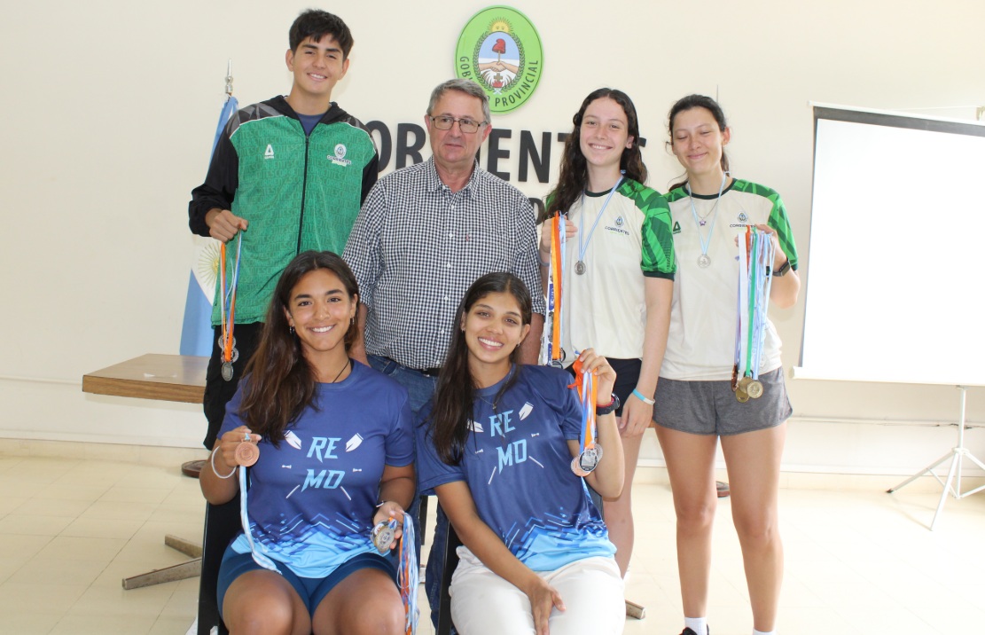 El secretario de Deportes de la Provincia, Jorge Terrile, recibió este miércoles a los remeros correntinos que participaron en el Campeonato Argentino de Remo, disputado recientemente en la pista nacional ubicada en Tigre, provincia de Buenos Aires. La delegación provincial estuvo compuesta por los atletas Alejandro Gómez Enríquez, Enzo Luján, Irina y Sabrina Zibelman, Ángeles Ayala, Juan Cruz Sandoval, Julián Galarza, Fiorela Méndez y el entrenador Leandro López Rivadeneiro. La presencia de los jóvenes deportistas en esta competencia marcó un nuevo hito en el desarrollo del remo correntino, una disciplina que ha ido consolidando su presencia en el calendario nacional.
