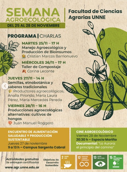 El cierre de las jornadas se realizará el mismo día a las 20.30 en el Espacio Mariño, ubicado en Santa Fe 847, con la proyección de un documental que relata la experiencia de la chacra agroecológica “La Aurora”, seguido de un debate abierto al público para profundizar en los desafíos y posibilidades de la agroecología en contextos rurales y urbanos.
