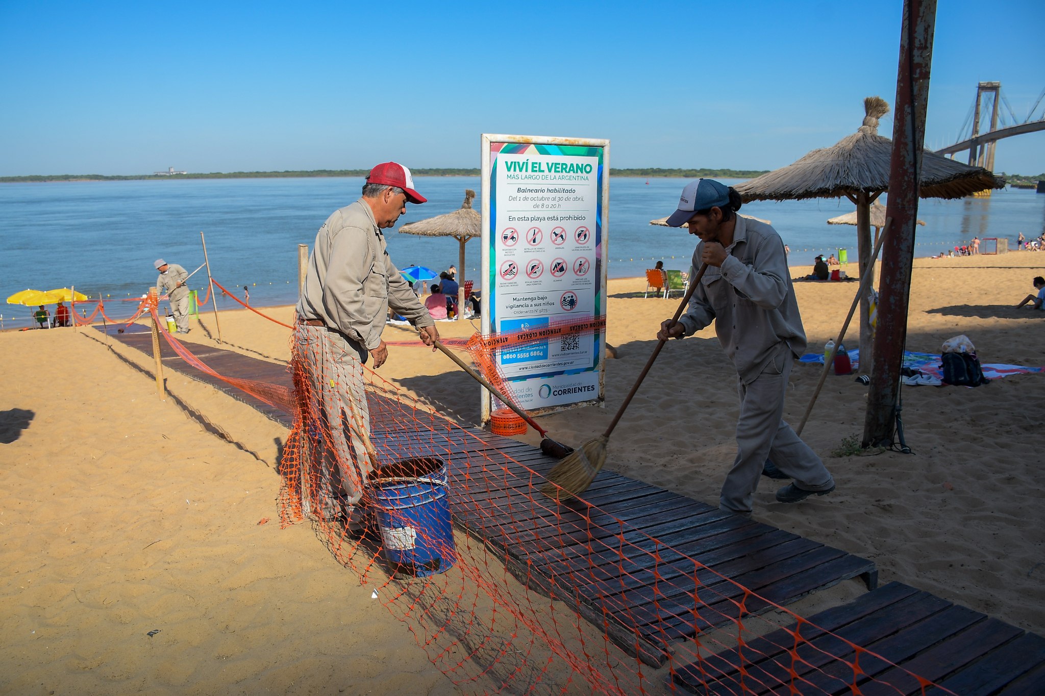 Las tareas se desarrollan específicamente en las playas Arazaty I y Arazaty II, dos de los principales balnearios públicos de la ciudad, ubicados sobre la costa del río Paraná.